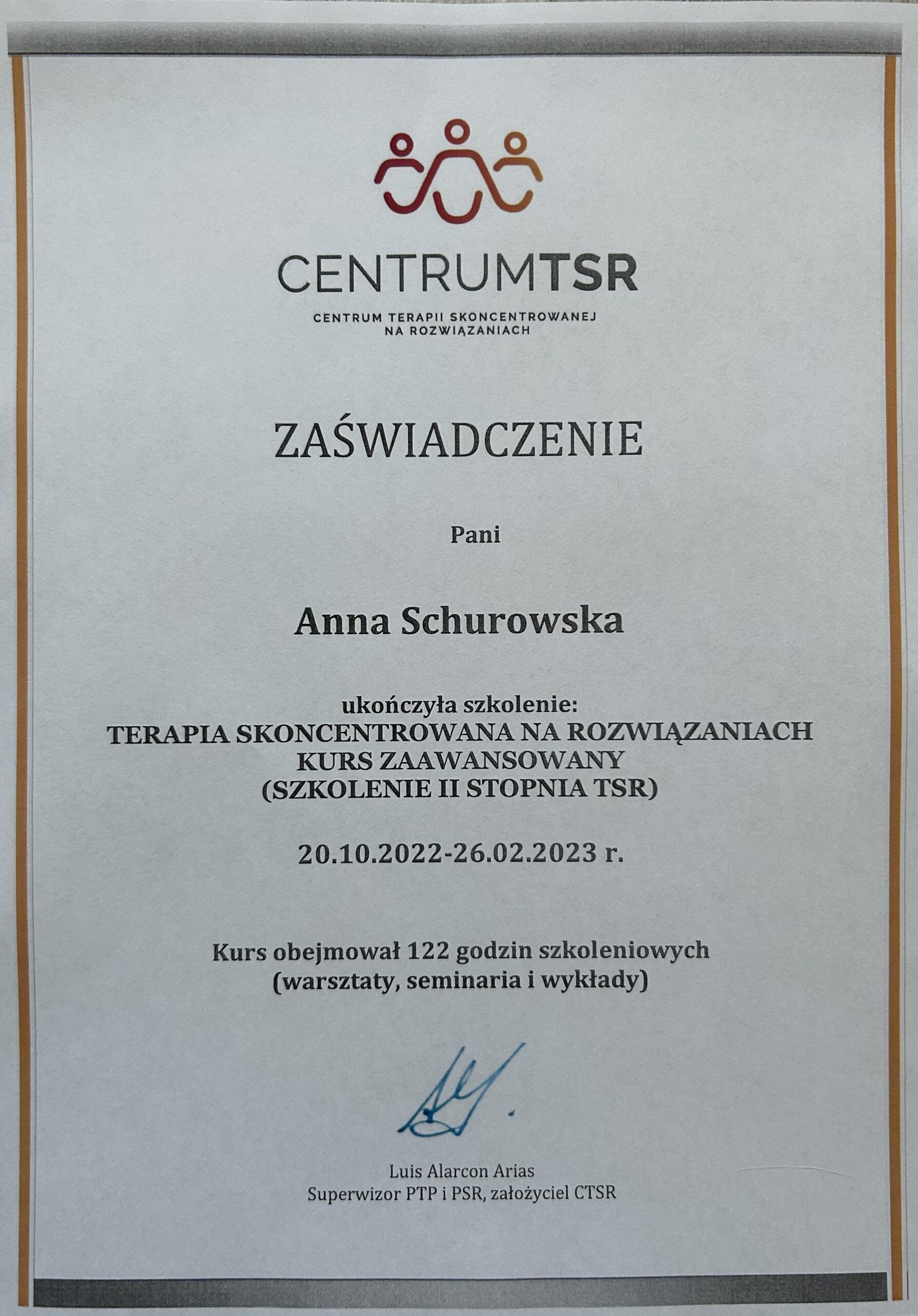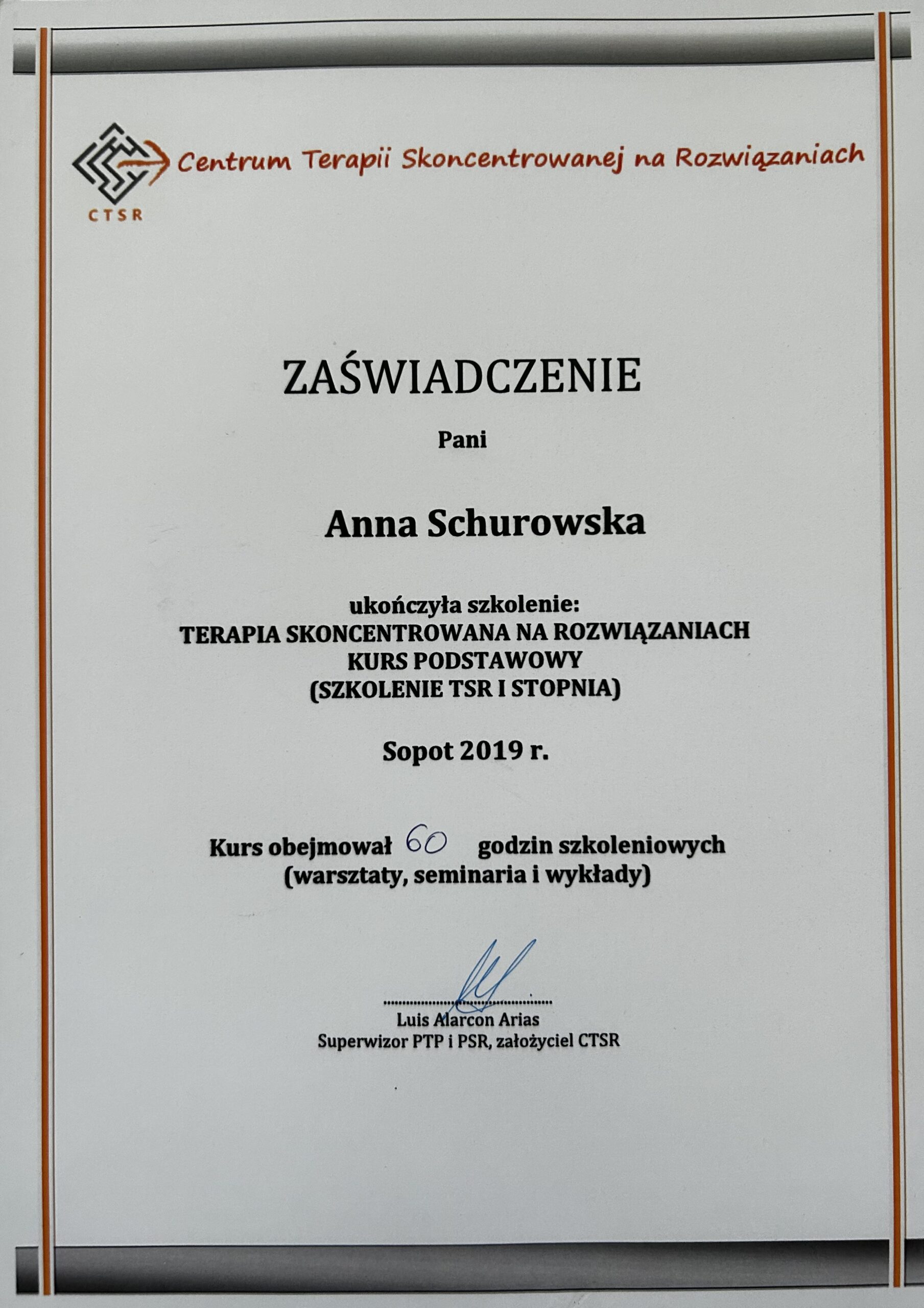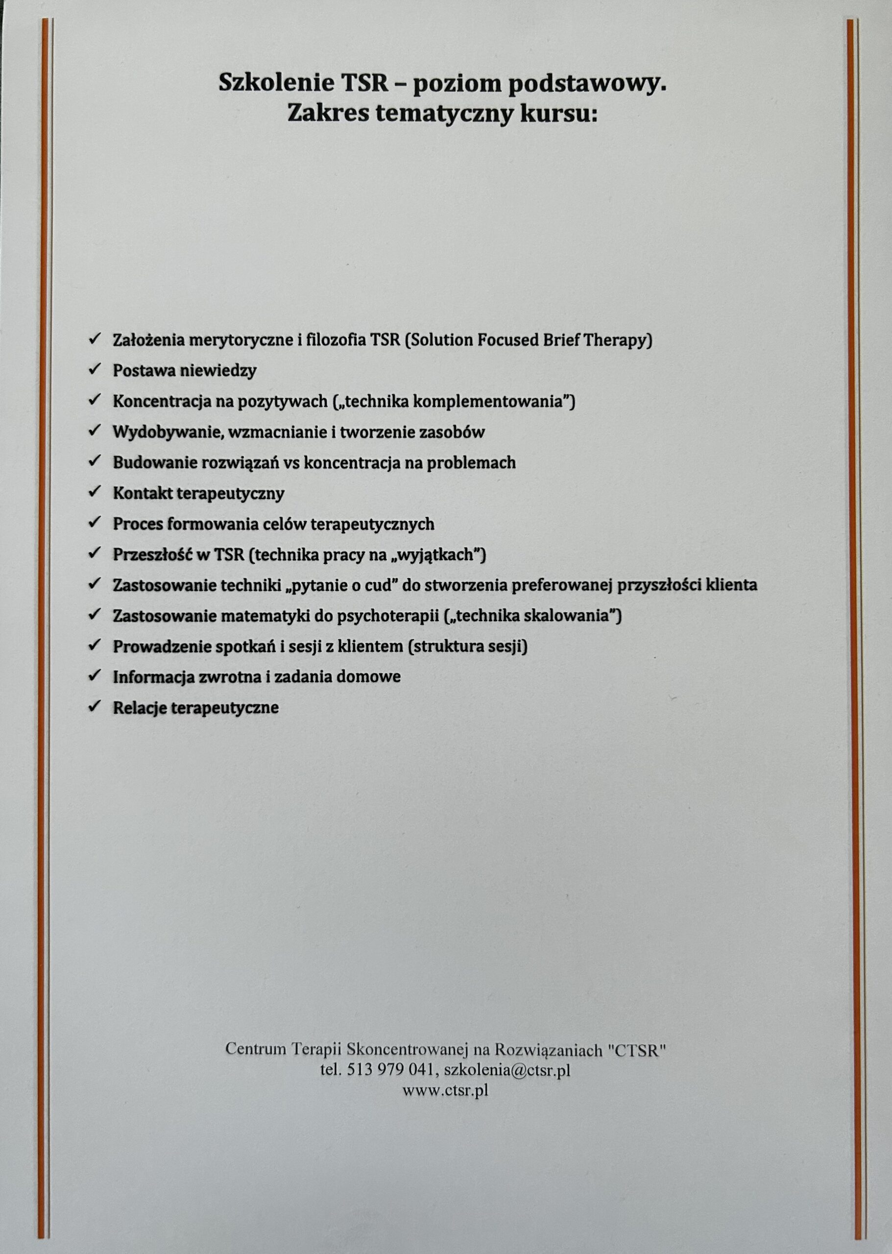 Terapeuta w nurcie krótkoterminowej Terapii Skoncentrowanej na Rozwiązaniach TSR w trakcie certyfikacji.